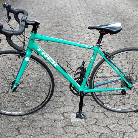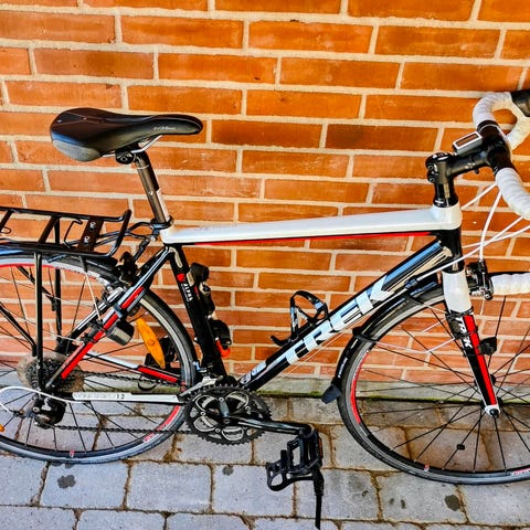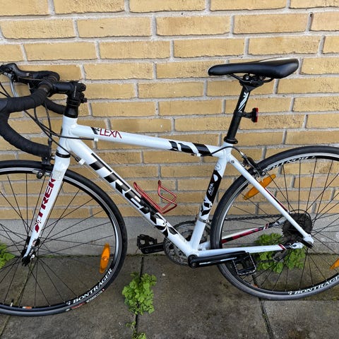 Brugt, ældre Trek model, som har været den perfekte begynder racercykel for mig. Cyklen er meget let og designet specifikt til kvinder med en komfortabel geometri, der gør den både hurtig og behagelig at køre på.