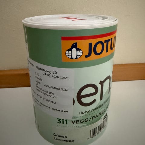 Sunny Green maling fra Jotun. Jeg gætter på, at der er omkring 4 liter maling