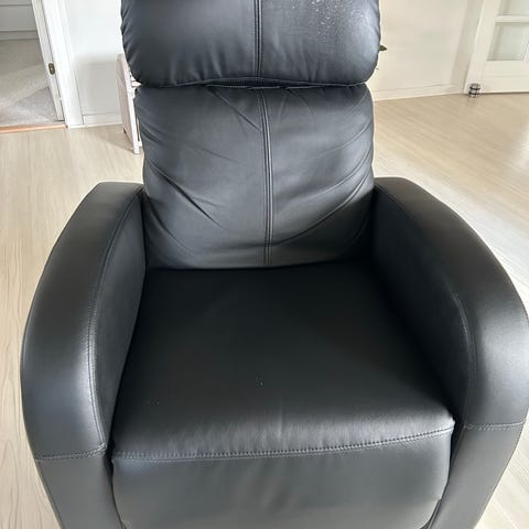 Otiumstol lænestol i sort læder, med løftefunktion.