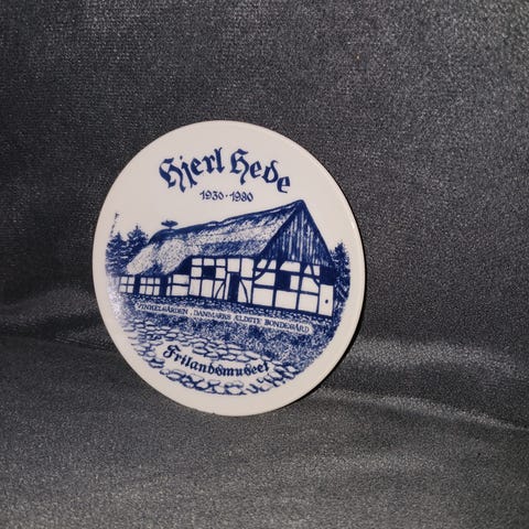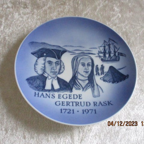 Lille platte med tegninger fra Godthåb og af Hans Egede.