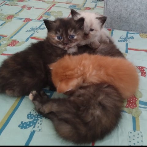 Skønneste killinger, halv Ragdoll (moderen). De er salgsklare d. 23. Maj 2026.
