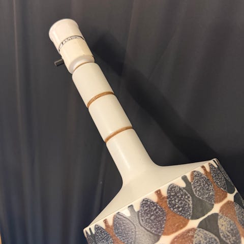 Smuk håndmalet bordlampe med tidselmotiv. Malet af Ellen Hansen i 1981.