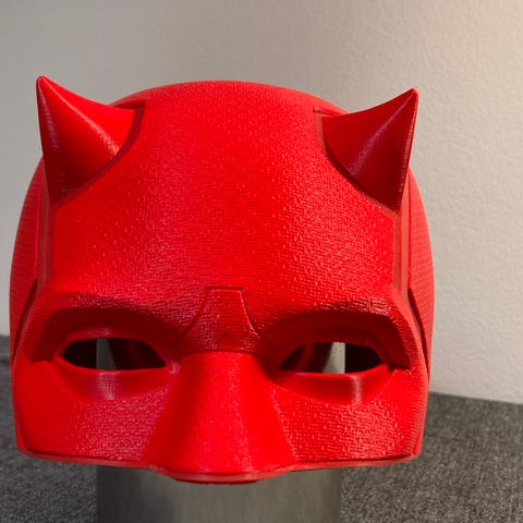 Rød djævlemaske til unisex. Masken har blank, rød overflade med horn og dækkende sort stof bagpå, som går ned over hovedet. Velegnet som udklædningsmaske til fx halloween eller kostumebruk. Masken er formet med åbninger ved øjnene og små huller ved næsen for ventilation.