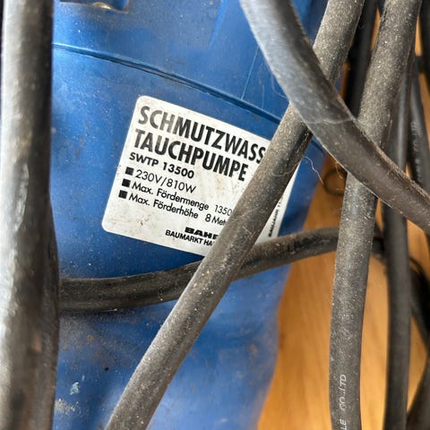 Kärcher SP 9.500 Dirt dykpumpe, 10 m afløbsslange medfølger. Pumpen kan tømme beskidt vand væk med partikler på op til 20 mm. Brugt 3-4 gange. Sort beholder med låg, som kan bruges til opbevaring, når pumpen ikke er i brug, kan også medfølge. Befinder sig på Bornholm, men kan bringes til København.