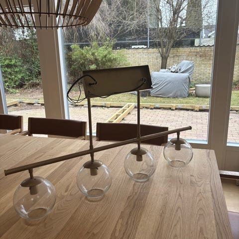 Den sorte ledning har et knæk, men lampen fungere stadig fint.