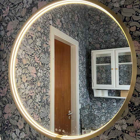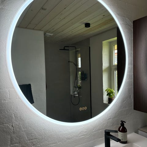 Rundt spejl ø 80 med lys, stadig i indpakning.