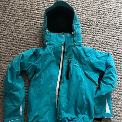 Skijakke, str. 42, SOS , Sort , Strech materiale, Næsten som ny, Lækker Skijakke god kvalitet fra SOS , Brystmål 112 cm længde 70 cm , med hætte og pelskant der kan tages af, god foring og lommer med lynlåse. Nypris 3199,-