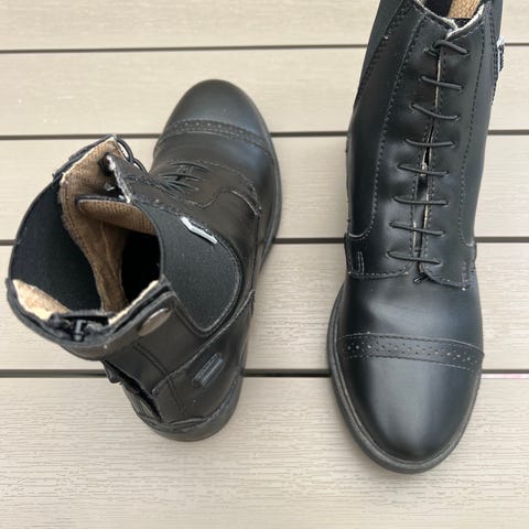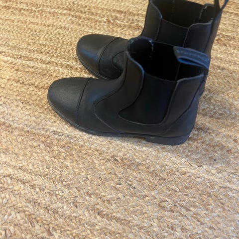 Korte ridestøvler / ankelstøvler i sort læder. Str 38 (uk 5) i sort læder.