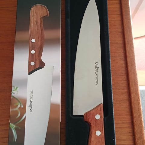Knivblok med 6 knive. 1 gaffel. 1 stgygestål