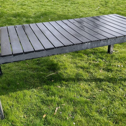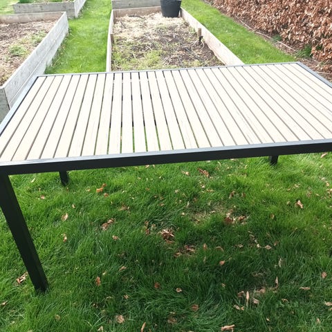 Havebord træbordplade. Kan evt. slibes og lakeres.