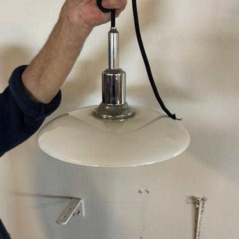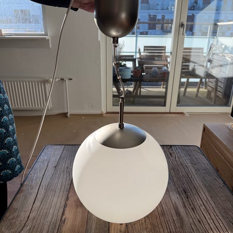 lampe med hvid glas kuppel og forkromet stang ikke en ikea