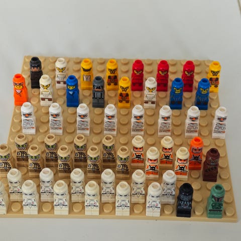 Hjemmelavet opbevaring/udstilling til legofigurer. Måler 100x60 cm. Sælges UDEN figurer. Skal hentes i Dragør☀️