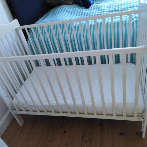 Fin seng med madras. Brugt af tre børn så den skal nok have lidt maling. Men den er bundsolid