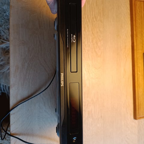 Philips blu-ray afspiller i sort. Enheden har understøtter 3d og leveres med original fjernbetjening som vist på billederne. På bagsiden findes blandt andet HDMI-udgang samt netværks- og strømtilslutning.