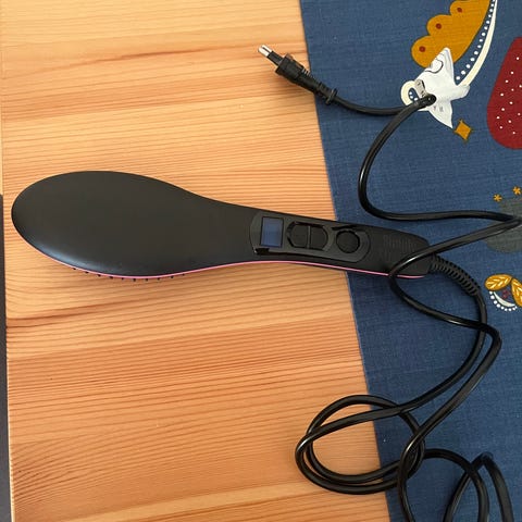 Silvercrest elektrisk glattebørste i sort. Børsten har integreret varmeplade og plasttænder, der er udformet som en almindelig hårbørste. Med ledning til strømtilslutning og betjeningsknapper på håndtaget til regulering af funktioner. Velegnet til glatning og styling af hår i hverdagen.