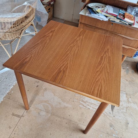 Lille smart køkkenbord/spisebord med masser af fleksibilitet. Mål: 80 x 80 cm. Med klap. 80x120