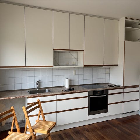 Køkkenet trænger til maling, kan besigtiges og nedtages fra 1. maj i Odense M
