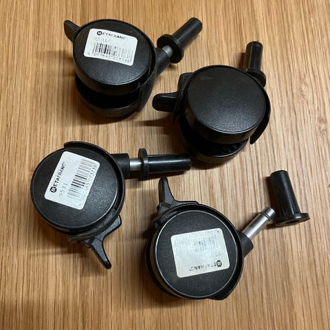 Hay Colour Crate hjul sæt large i grå. Sættet består af 4 hjul, der er designet til brug sammen med Hay Colour Crate-kasser. Hjulene har grå plast-/gummibelægning og metalbeslag samt tap til montering i kasserne. Velegnet til at gøre Colour Crate-kasser mobile på gulv eller andre jævne overflader.