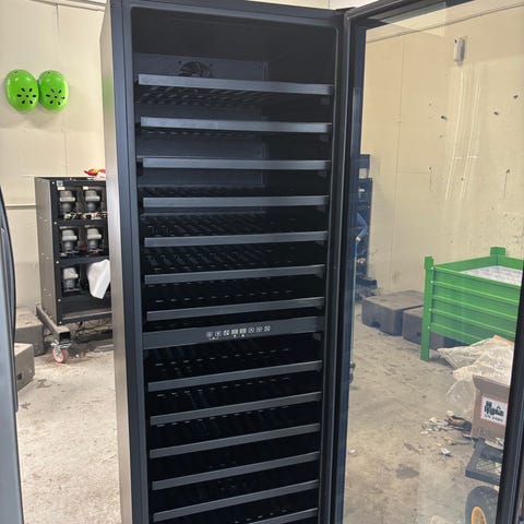 Euro vinkøleskab med glaslåge og træhylder