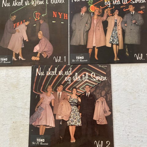 Pladerne ligger i originale papomslag fra blandt andet F. Østmann’s, Fona Radio og Freddy Hansen. Etiketterne viser blandt andet titler som “Nissepolka” på Tono og “Spil en polka, spillemand” på Philips.