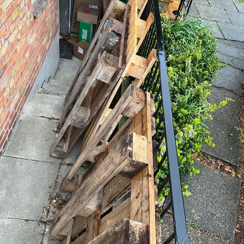 To styks træpaller velegnet til opbevaring, transport eller gør-det-selv projekter. Pallerne kan bruges til fx møbelbyggeri, terrasse, plantekasser eller anden konstruktion, hvor der ønskes genbrugstræ. Standard pallekonstruktion med brædder og klodser i massivt træ. Sælges som viste paller på billedet.