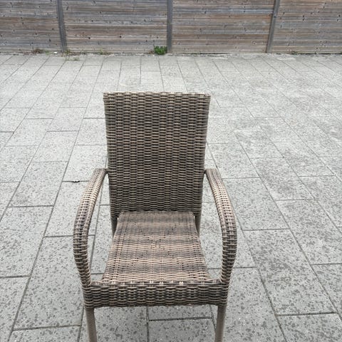Flet havestol/cafestol sælges grundet flytning. Flettet er intakt. Den vakler lidt, men kan sagtens blive fin hvis man giver den en kærlig hånd.
