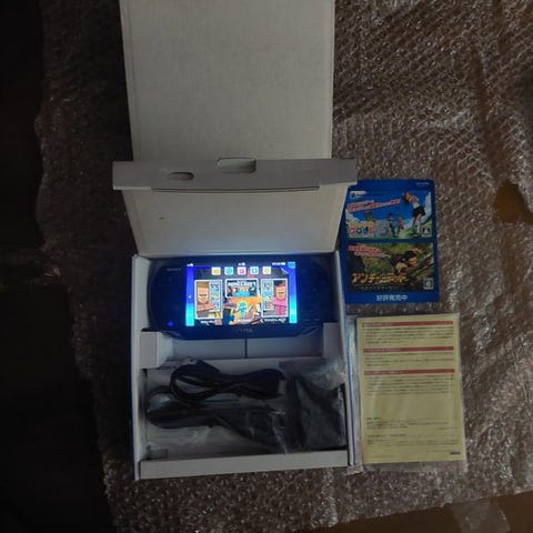 7 spil som ses på billedet, dertil kommer der taske, silikone beskyttelse, cart cases, og en Dock med til hørende adapter / lade stik.