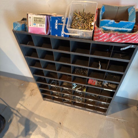 Rigtig fin blå skruereol. Kan også bruges til andet end skruer.