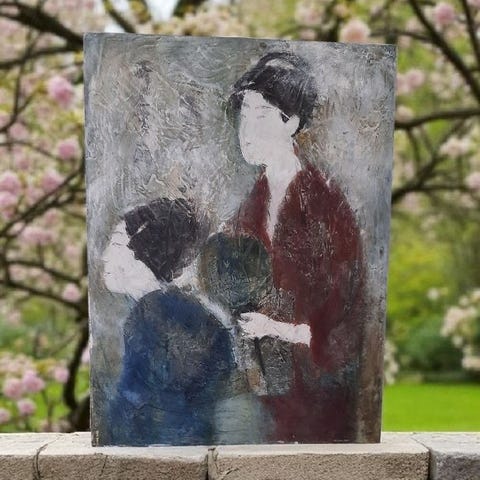 Reproduktion i olie/akryl, motiv: Kinesisk kvinde, b: 25,2 h: 30, Moderne kinesisk kunst. Ukendt kunstner, måske kopi af Wang Zhijie. Ikke indrammet. Målene er for selve maleriet. Lærredet er 33 x 38 cm.