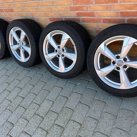 Originale Audi alufælge med Continental vinterdæk med ca. 5 mm mønster. Med medfølgende centreringsringe passer de på VW mfl. har siddet på en VW Tiguan.