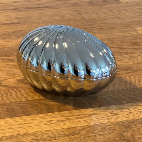 Skålen har det karakteristiske riflede Hammershøi-design og består af to dele, hvor låget også kan anvendes som lille skål. Velegnet til opbevaring eller servering af mindre ting som snacks, smykker eller andre små genstande i hjemmet.