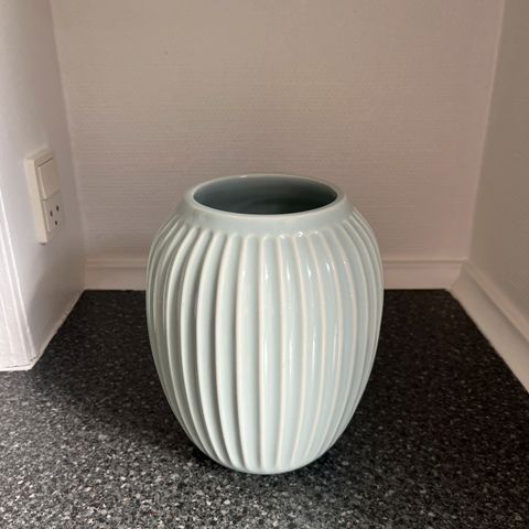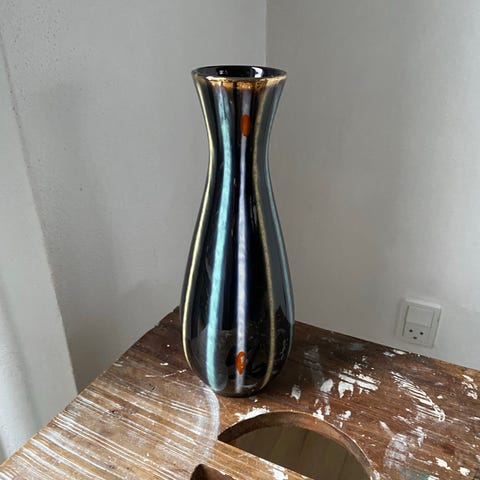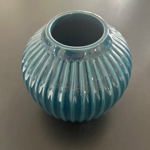 Vase m striber 16 cm høj vase med grafisk mønster med lidt patina VissenGrøn