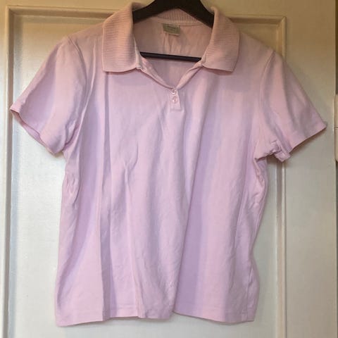 Sportsbluse med korte ærmer i god kvalitet. Lyseblå Golfpolo / T-Shirt i pæn stand. Mrk.: Pepper Corn M 100% bomuld. Str. M. Brystvidde 90 cm. Længde 53 cm.