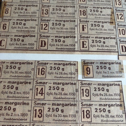 Gamle rationeringsmærker / madmærker – Danmark (retro/krigstid)