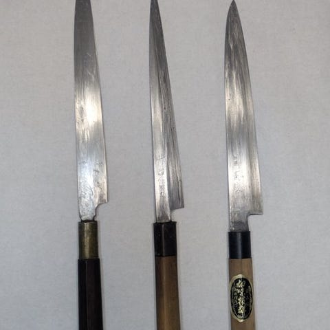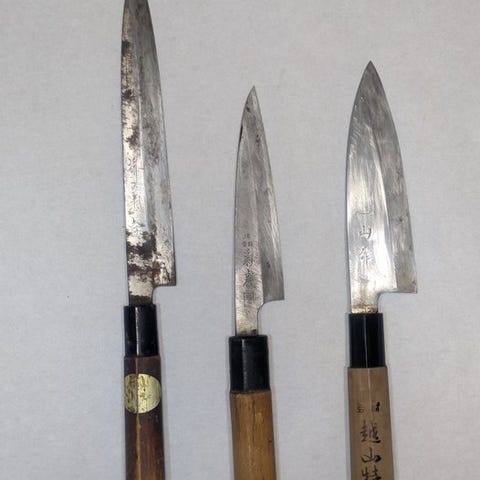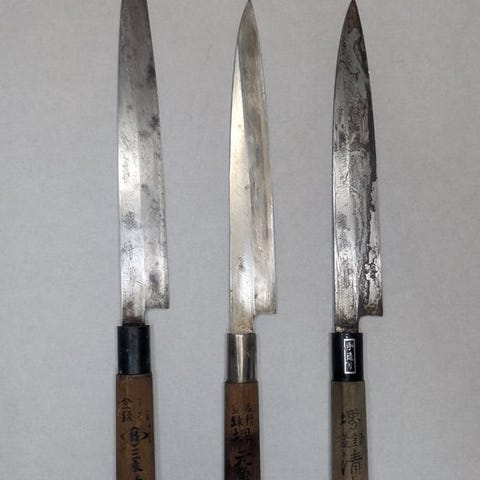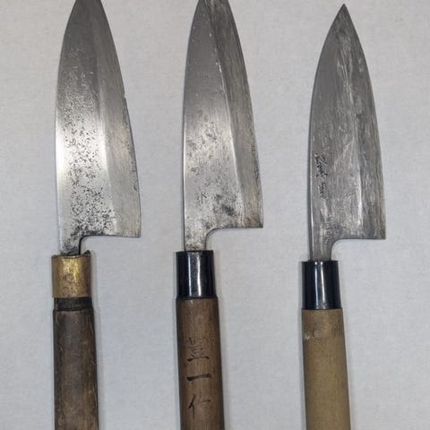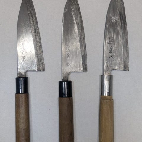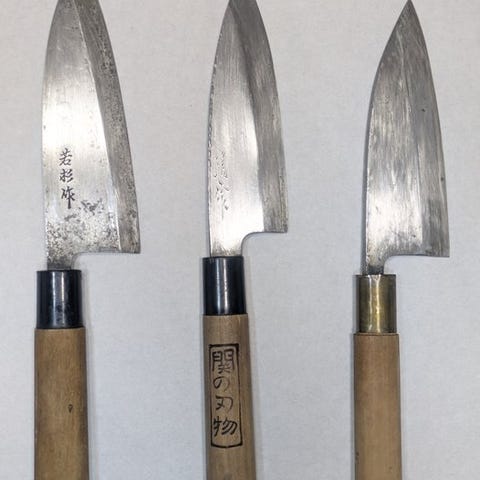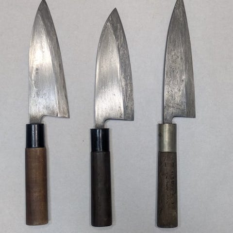 Køkkenkniv - Stål, Træ - Japan - Traditionelle håndslåede japanske deba-knive...