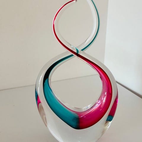 Glas skulptur mærket „Vase“ af Art Cristal Bohemia fra Tjekkiet, mid-century modern stil, mundblæst og håndformet, under signatur gravet nederst, 31 cm høj, 10 cm bred, 7 cm dyb, i fremragende stand. Klik på den blå "gå til varen" knap, for at købe eller byde på denne vare. Den samlede pris vil blive vist inden du afgiver dit bud.