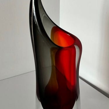 Elegant glas-skulptur " Vase " i klart, sort og rødt glas, fra Art Cristal Bohemia fra Tjekkiet.