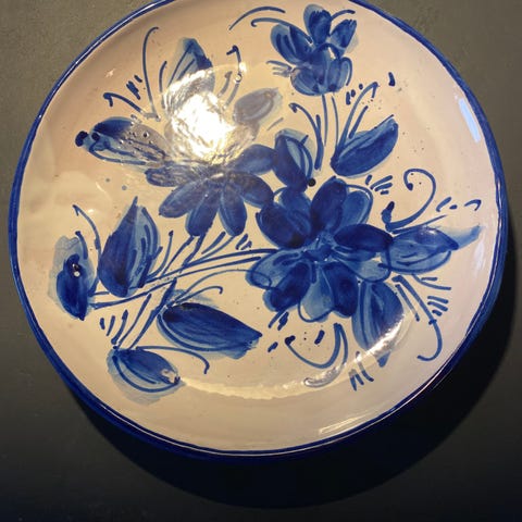 Smuk italiensk porcelænstallerken med håndmalet blomstermotiv.