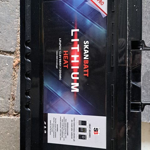 Skanbatt Lithium Heat Pro batteri. Litiumbatteri (LiFePO4) egnet til brug, hvor der ønskes et let og kompakt batteri med integreret varmefunktion. Batteriet er designet til anvendelse i fx camping, både eller andre installationer, hvor stabil strømforsyning er nødvendig. Yderligere tekniske specifikationer som kapacitet, spænding og mål afhænger af den konkrete modelvariant.