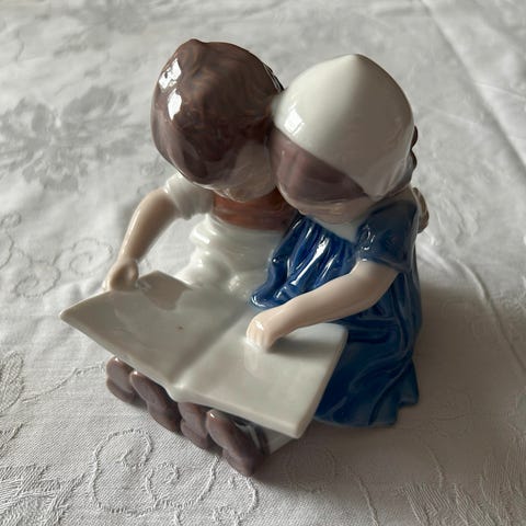 Bing og Grøndahl, læsende børn, Bing og Grøndahl, Læsende børn. Sød figur i klassisk blå og hvid, fra Bing og Grøndahl. Hel og fin, uden skår.