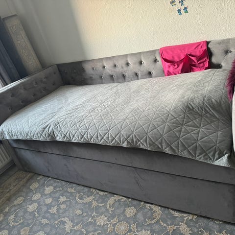 Fin seng enkelt / dobbelt med 2 store skuffer. kan ved udtræk blive ca. 180 cm
