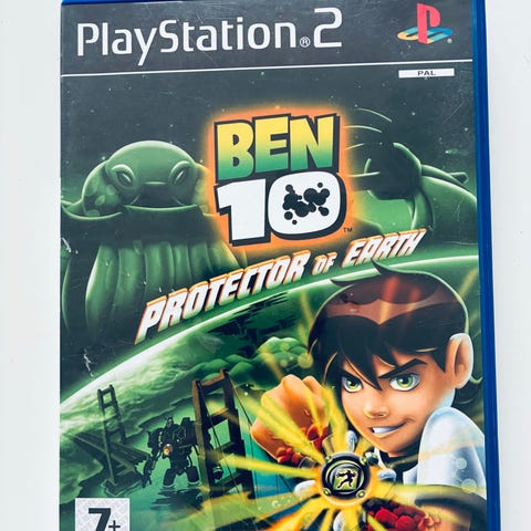 Ben 10 Protector of Earth Playstation 2 spil. Action- og eventyrspil baseret på Ben 10-universet, hvor spilleren styrer Ben og bruger Omnitrixen til at skifte mellem forskellige alien-former. Spillet er på DVD-medie til Playstation 2-konsol og er PEGI 7-mærket.