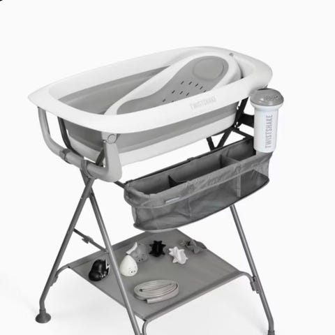I badekarrets ene hjørne er et mikroskopisk usynligt hul, så en lille smule vand pibler ud undervejs. Men hvis badekarret står inde i en bruseniche, er det ikke et problem overhovedet - heller ikke noget, der påvirker, hvor lang tid badet varer (stadig et så langt bad, som barnet ønsker).