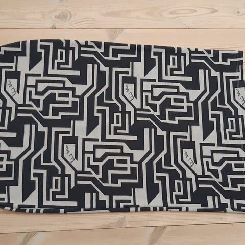 Milla nederdel M. NY UDEN MÆRKE. Talje 78cm. Længde 44cm. Hofte 92cm. Abstrakt grafisk sort hvidt mønster. Jersey strik. Vejer 185g.