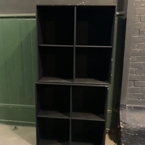 Små Montana inspireret reoler i orange, grøn og gul farve.