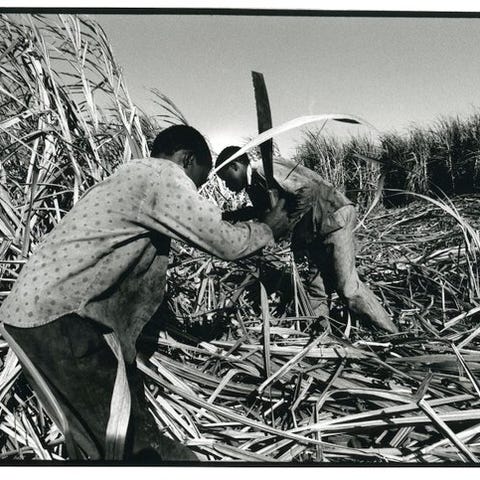 Sort-hvidt fotografi i egetræs ramme med museumsglas