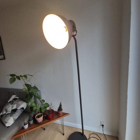 Italiensk standerlampe fra 60'erne i messing. Lampen kan justeres i højden. Lampen har patina.