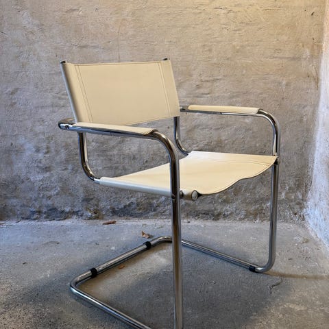 Model: Thonet S 34 Designet af Mart Stam i 1926 på Bauhaus skolen. Hvidt læder og stålstel.
