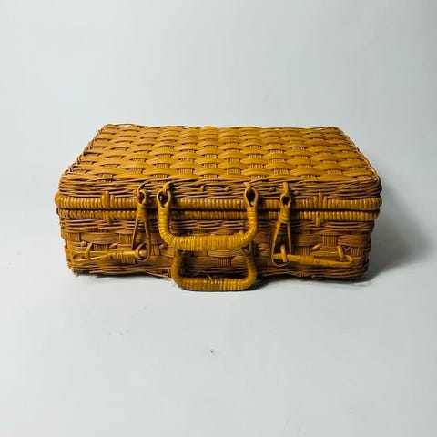 Kurvekuffert, Ukendt, Minikurvekuffert 25 x 14 x 9 cm. Købt i Magasin midt i 70’erne. Kufferten har lige fået et bad og en lille reparation bagpå (se foto). Pris: 100 kr kontant ved afhentning. Se mine andre annoncer.