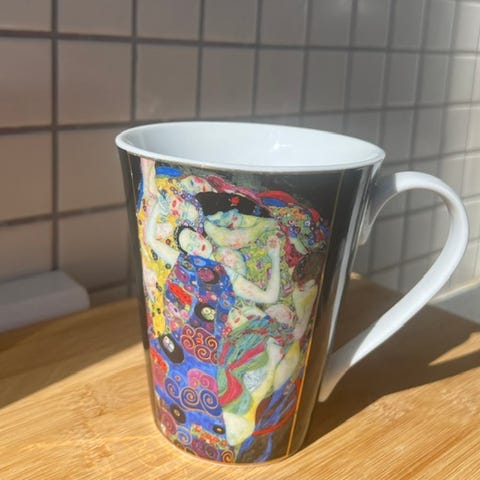 Flot kunst-krus i porcelæn med Edward Munch illustration fra Magnor Glassverk Norway.